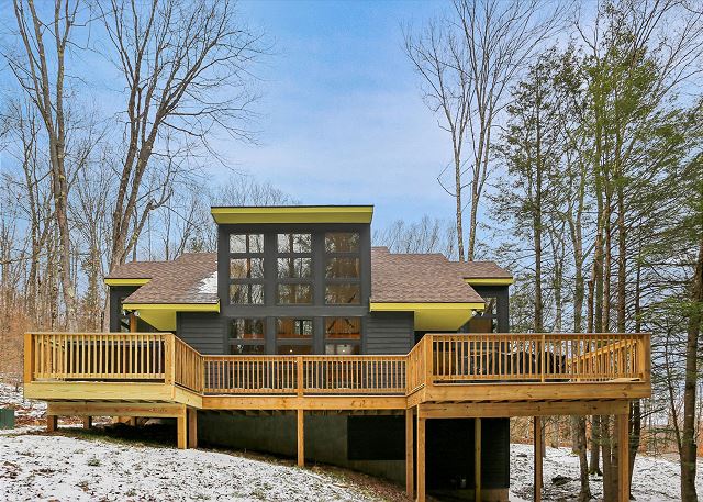Nature awaits just outside of this lovely new contemporary home, and the generous column of windows brings it right inside to you. Tuckered Out is the newest addition to Best of Canaan’s vacation rental roster. Inside, everyone is sure to enjoy the open floorplan, modern kitchen, gas fireplace, and comfortable bedrooms. Outside enjoy all the recreational activities that Canaan Valley has to offer. Planning to watch the game or catch up on a little work? Tuckered Out offers multiple TV’s and the WIFI is free! Whether you are hiking, biking, skiing, fishing, or hunting, you can enjoy them all just steps or only a few miles away. Evenings will find you relaxing in the brand new outdoor hot tub and recalling all the reasons Canaan Valley should be annual vacation destination. Don’t stay up too late. You are sure to be Tuckered Out! Winter renters should plan on four- or all-wheel drive vehicles with good winter tires. Tire chains may be an important thing to bring along, just in case.